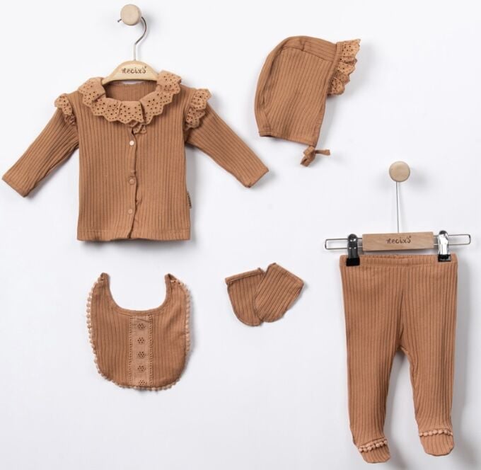 Üst zıbın, alt zıbın, önlük, şapka, eldiven şeklindedir.