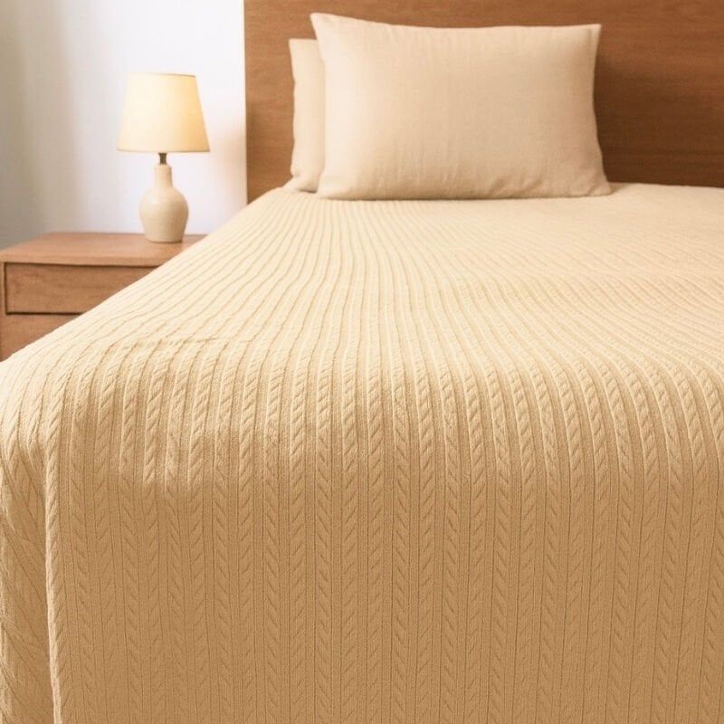 Tek, çift ve battal boy ölçü seçenekleriyle her yatak tipine uyumlu; ayrıca yatak örtüsü veya şal olarak da çok yönlü kullanım imkanına sahiptir.