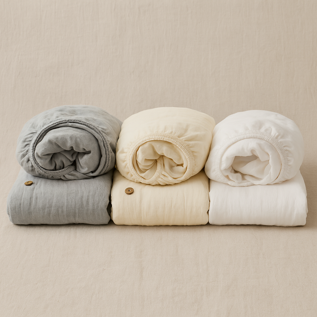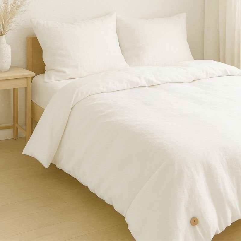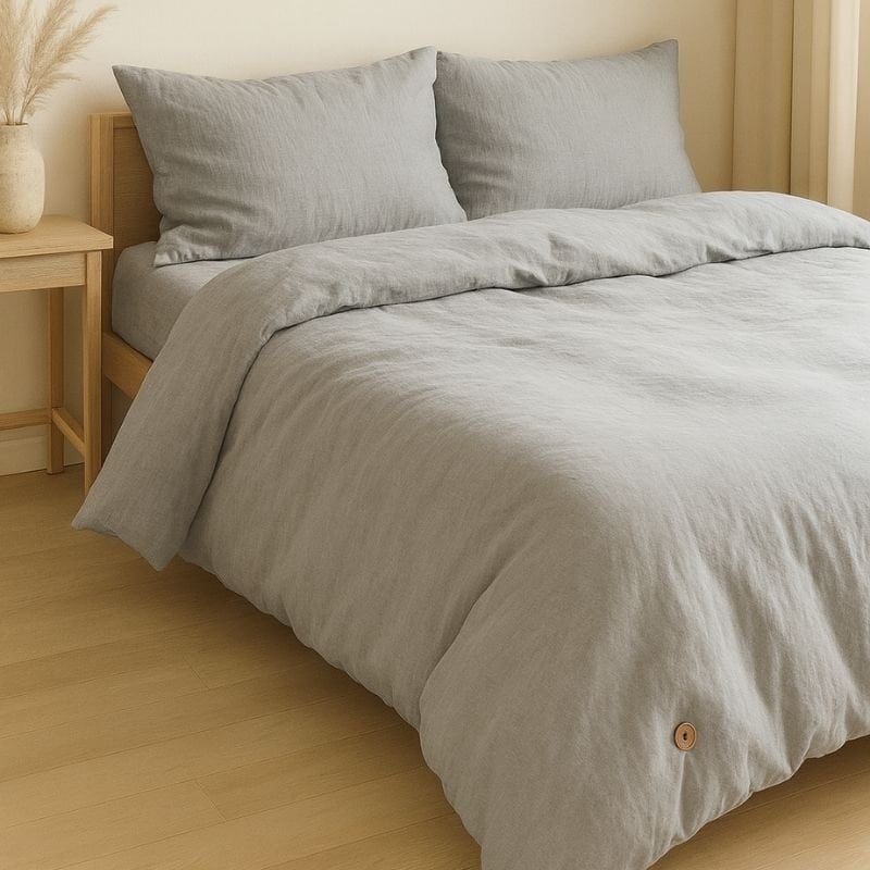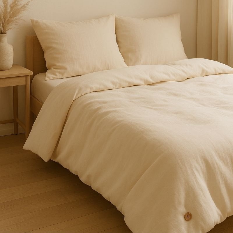 %100 pamuk müslin kumaştan üretilen çift kişilik nevresim takımı, doğal, hafif ve nefes alabilen yapısıyla sade ve konforlu bir uyku sunar.
