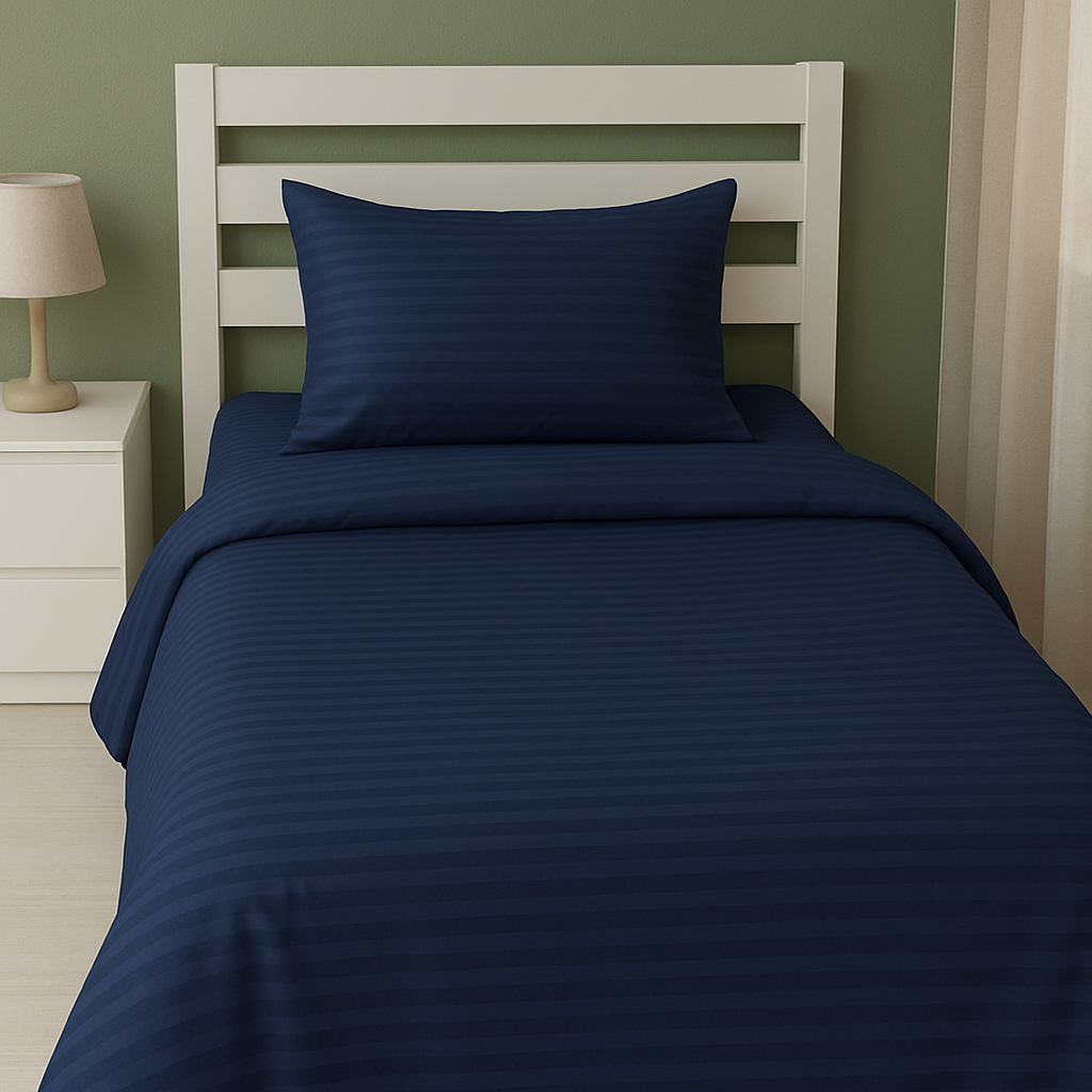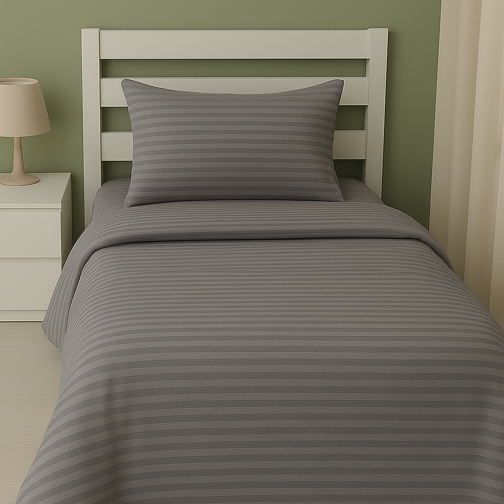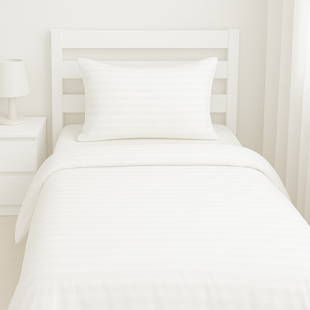 1 adet tek kişilik lastiksiz çarşaf, 1 adet nevresim, 1 adet yastık kılıfı