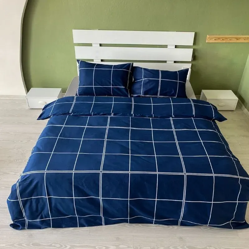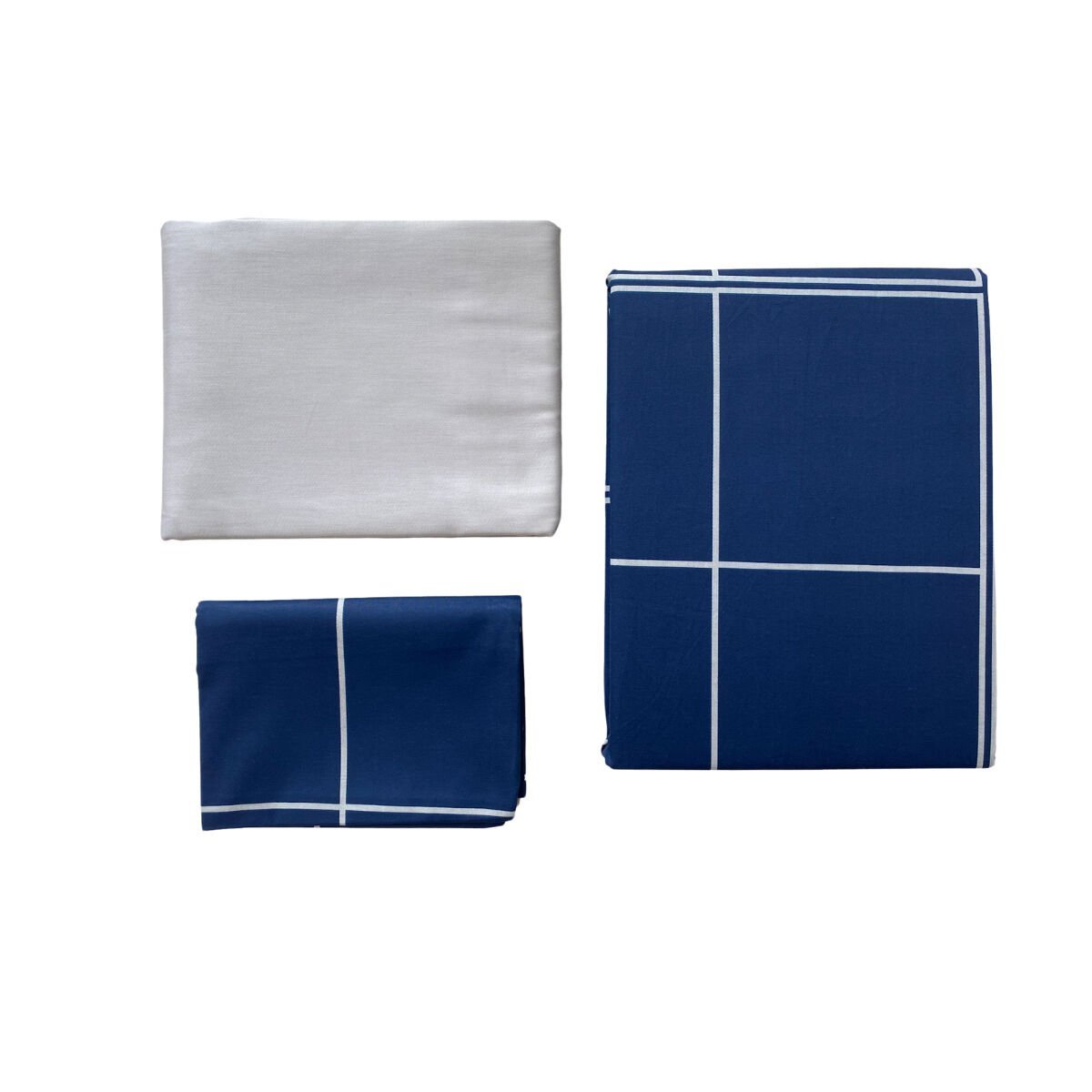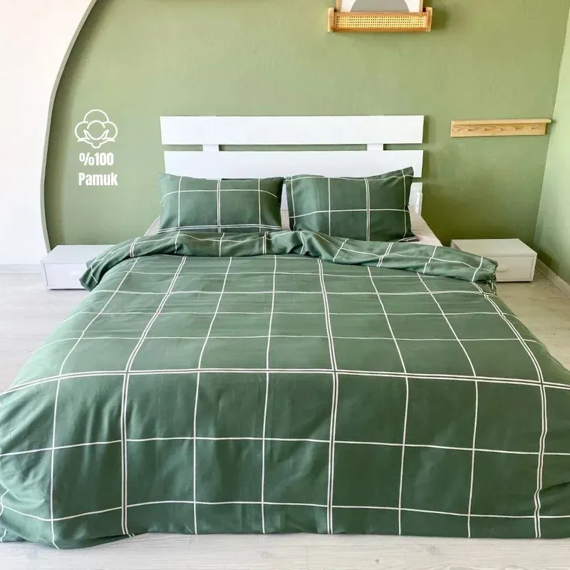 1 adet çift kişilik lastiksiz çarşaf, 1 adet nevresim, 2 adet yastık kılıfı
