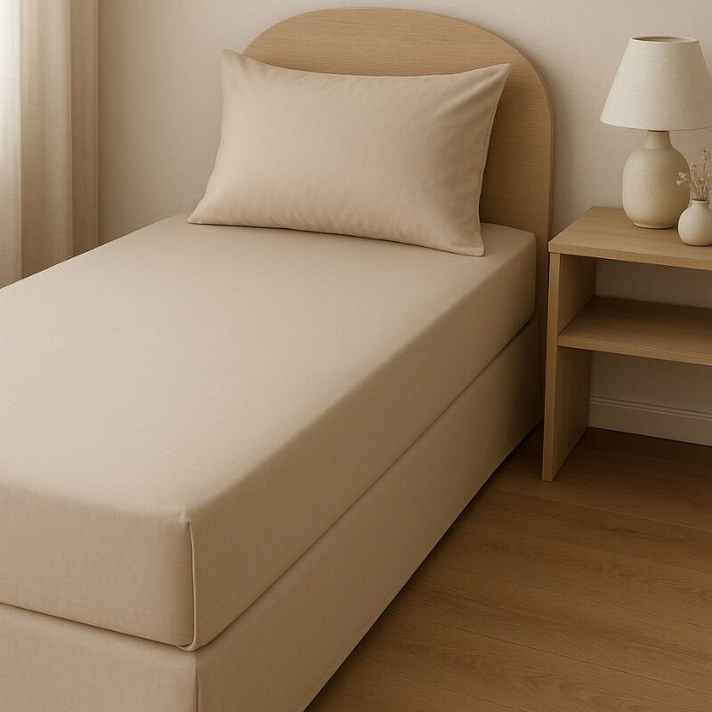 1 adet tek kişilik lastikli çarşaf, 1 adet yastık kılıfı