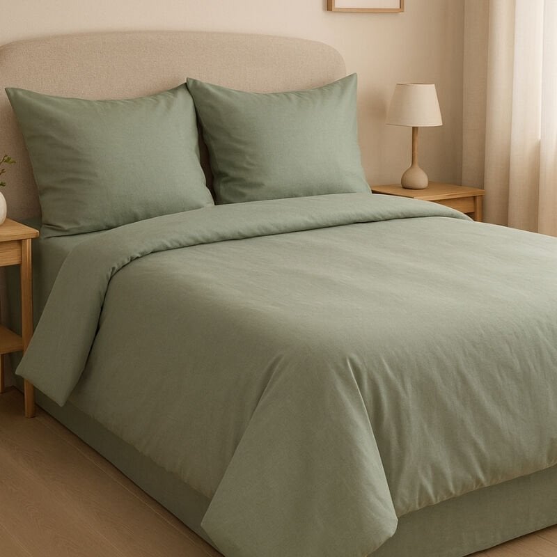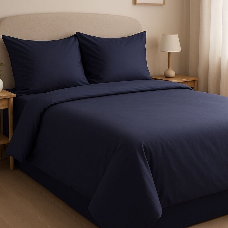 1 adet çift kişilik lastiksiz çarşaf, 1 adet nevresim, 2 adet yastık kılıfı