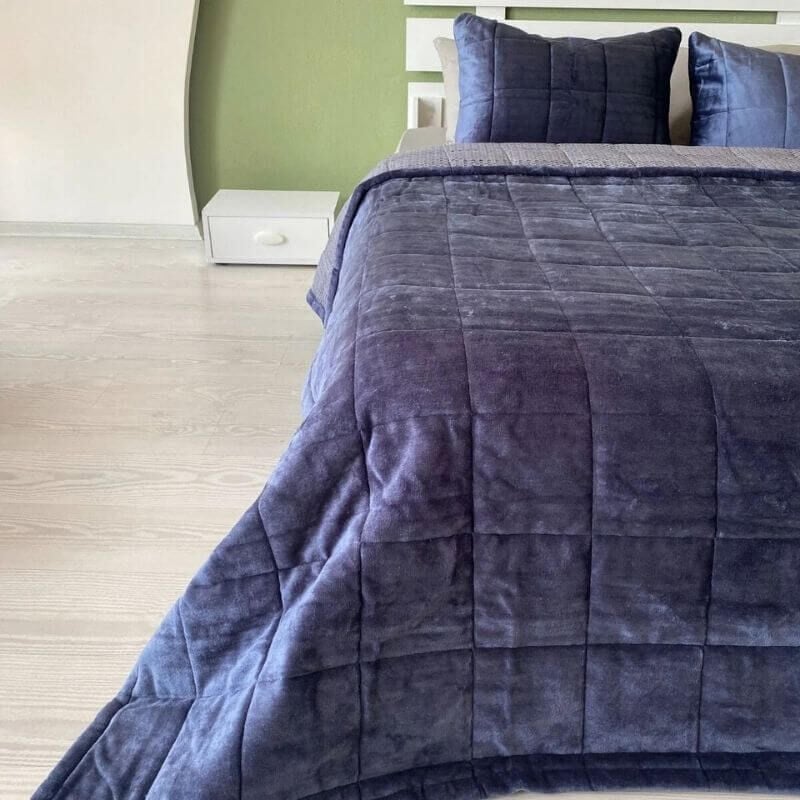 1 adet çift kişilik lastikli çarşaf, 1 adet çift kişilik yorgan, 2 adet kadife yastık kılıfı, 2 adet düz renk yastık kılıfı