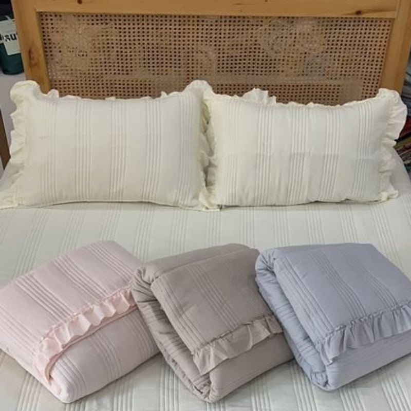 Sutra Fırfırlı Kenarlı Çift Kişilik Yatak Örtüsü Seti Paket İçeriği;