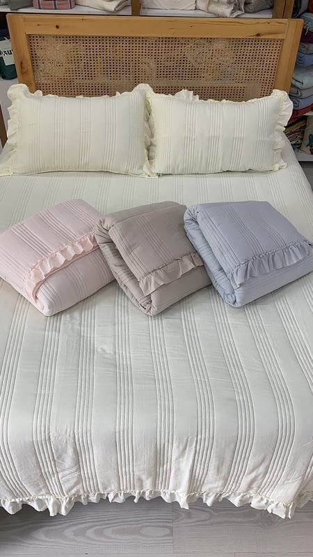 Yatak odanıza romantik ve zarif bir dokunuş katmak isteyenler için ideal bir seçenek: Sutra Fırfırlı Kenarlı Çift Kişilik Yatak Örtüsü Seti. Yumuşak dokusu ve fırfırlı kenar detaylarıyla hem estetik hem de konfor sunar. Modern çizgileri ve zarif renk seçenekleriyle her tarz dekorasyona uyum sağlar.