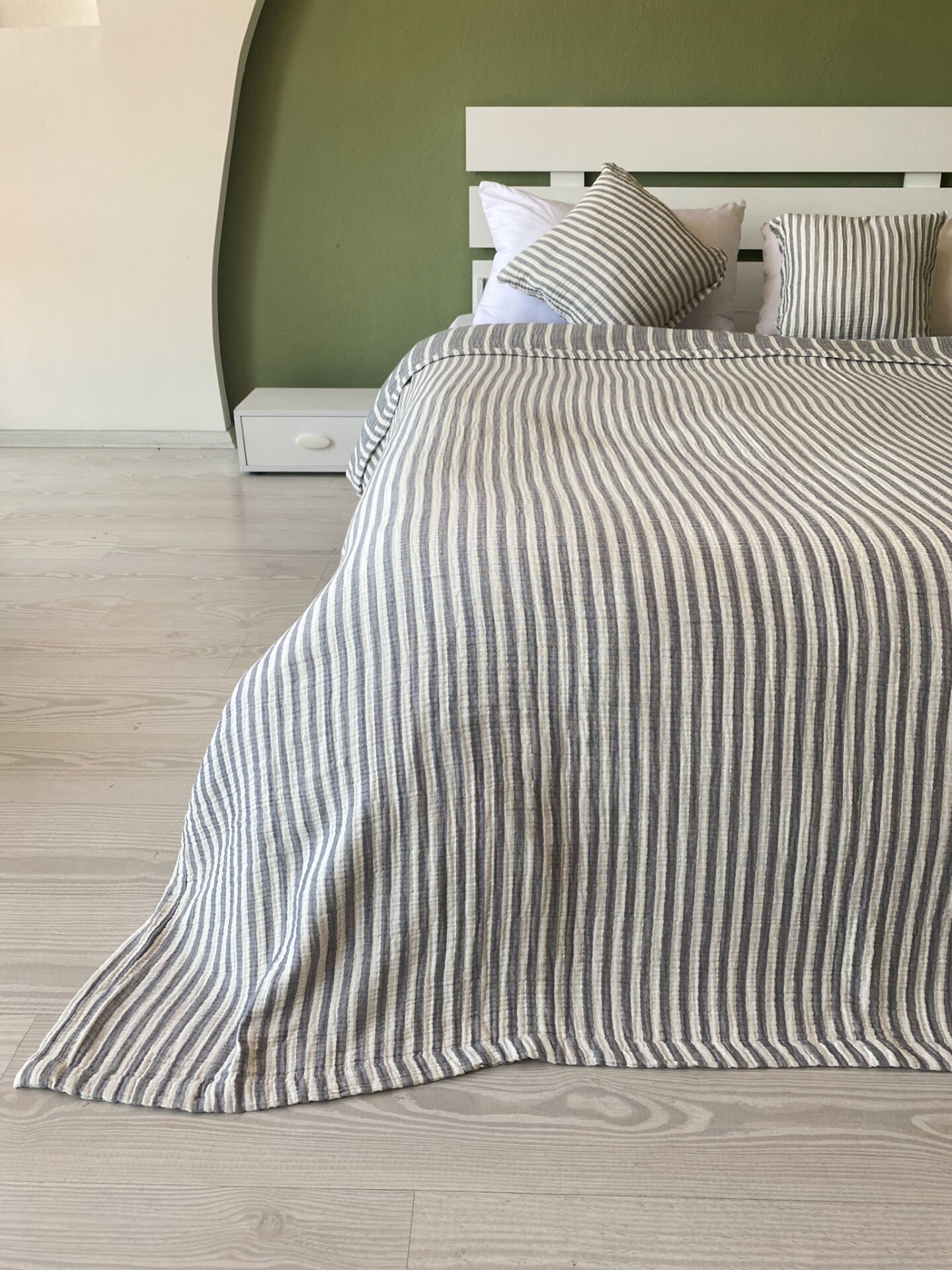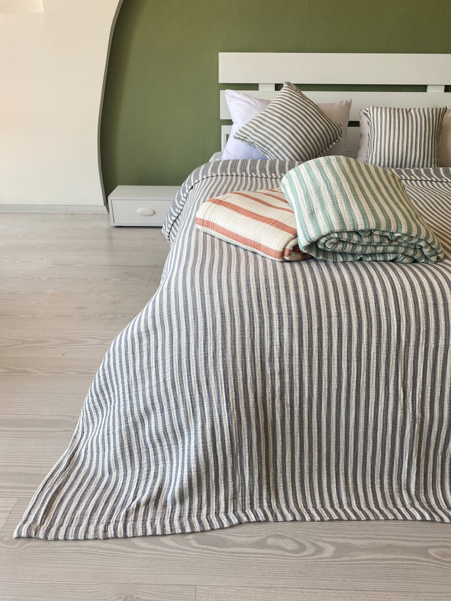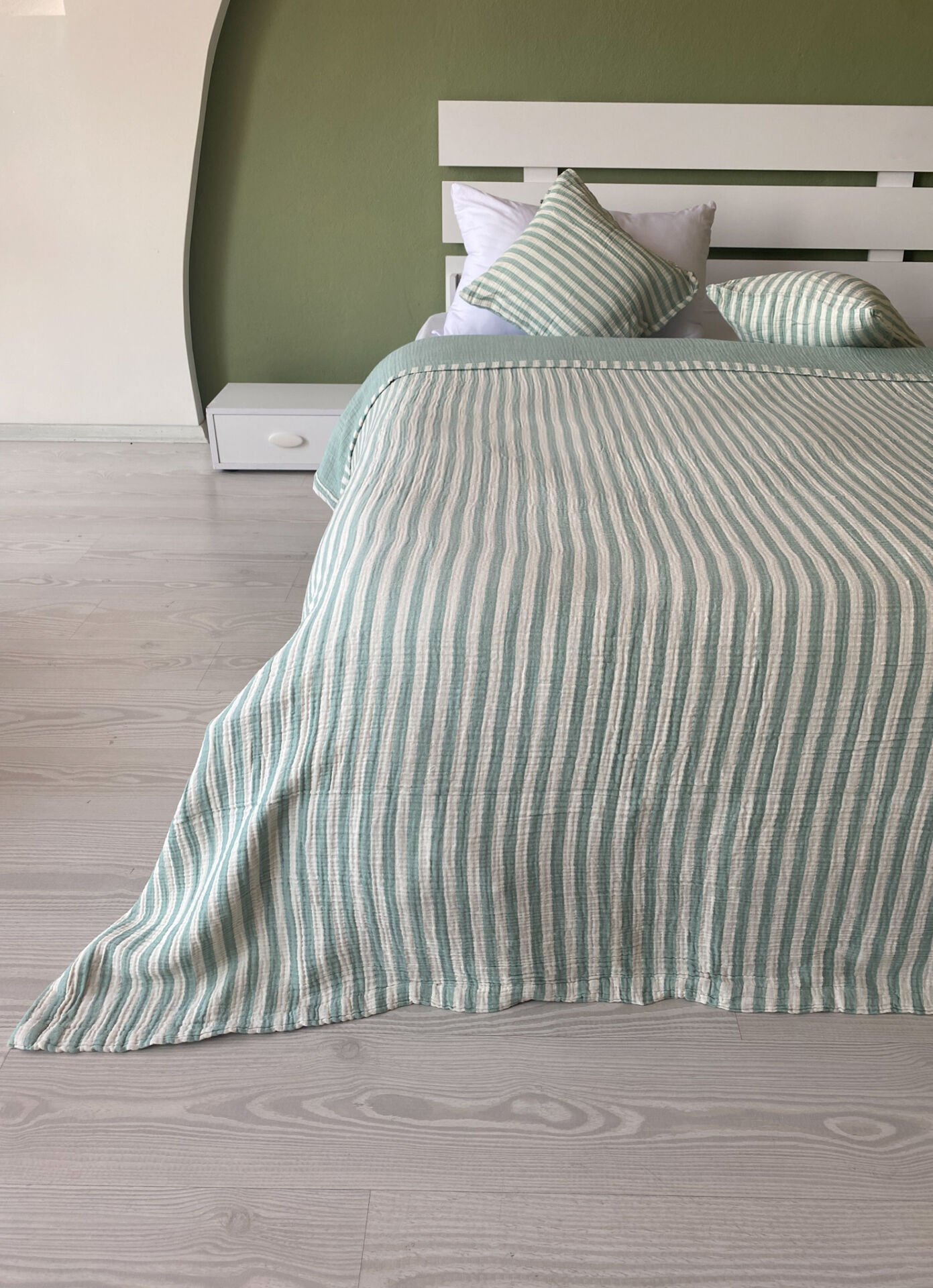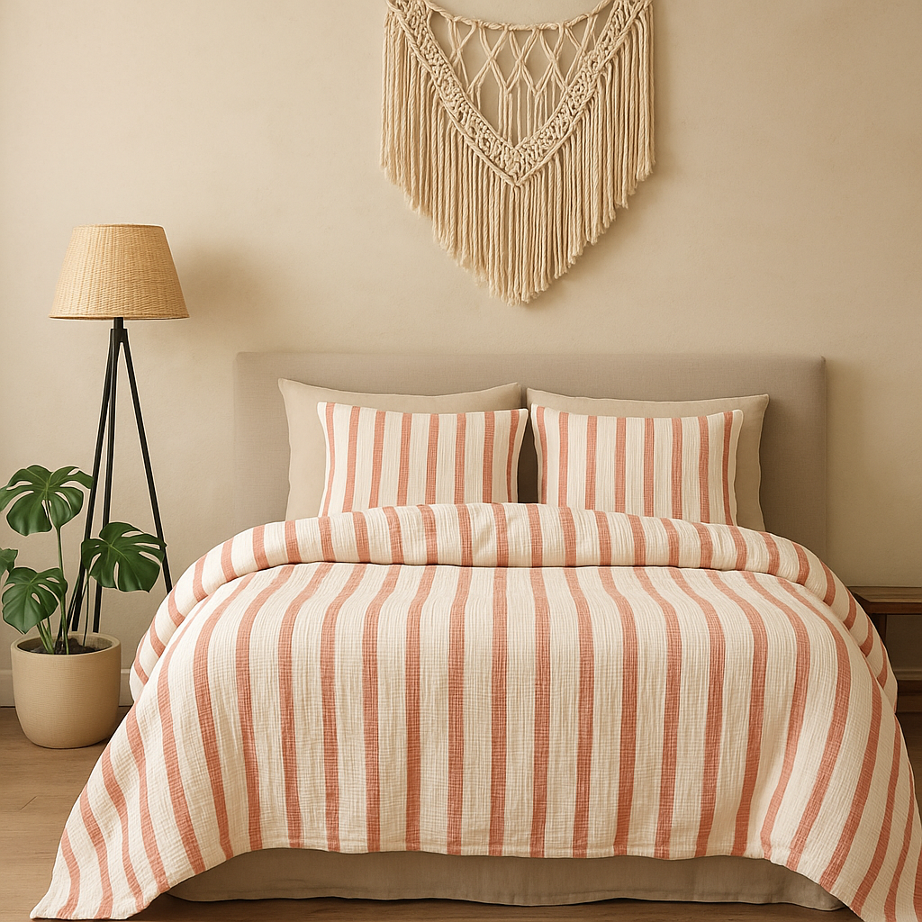 Yatak odanıza doğallık ve zarafet katmak isteyenler için ideal bir seçenek: Sutra Müslin Yatak Örtüsü Seti. %100 pamuk müslin kumaşı sayesinde yumuşak ve nefes alabilen bir doku sunar, cildinizle dost bir temas sağlar. Hafif yapısı sayesinde yaz aylarında serinlik sunarken, kış aylarında ise ekstra bir katman olarak kullanılabilir.