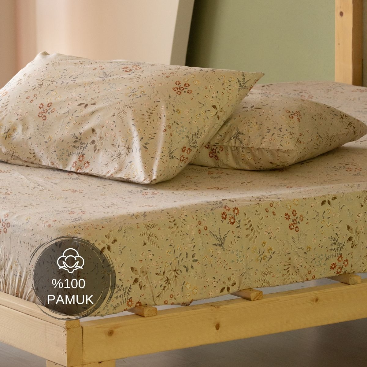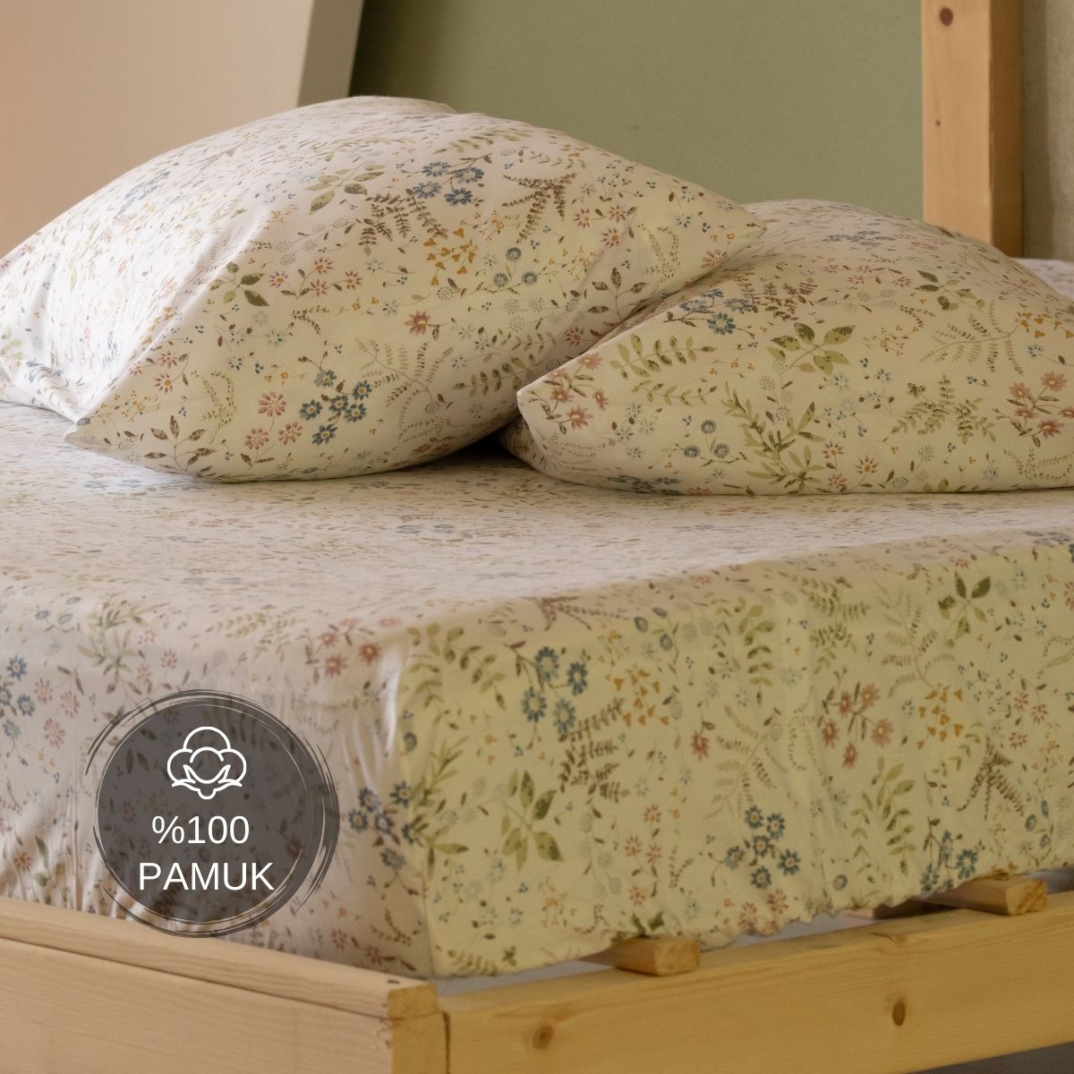Tek Kişilik Sette; 1 adet tek kişilik lastikli çarşaf, 1 adet yastık kılıfı