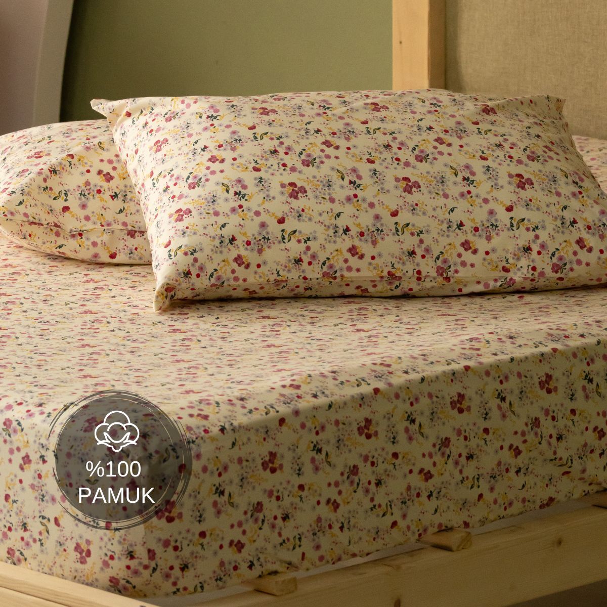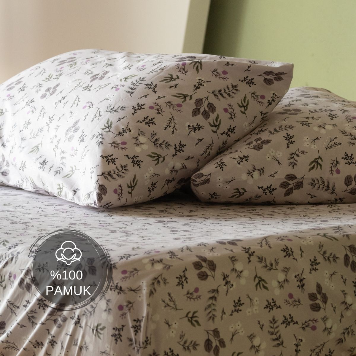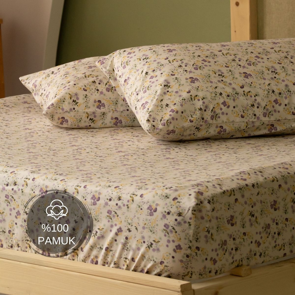 Çift Kişilik Sette; 1 adet çift kişilik lastikli çarşaf, 2 adet yastık kılıfı