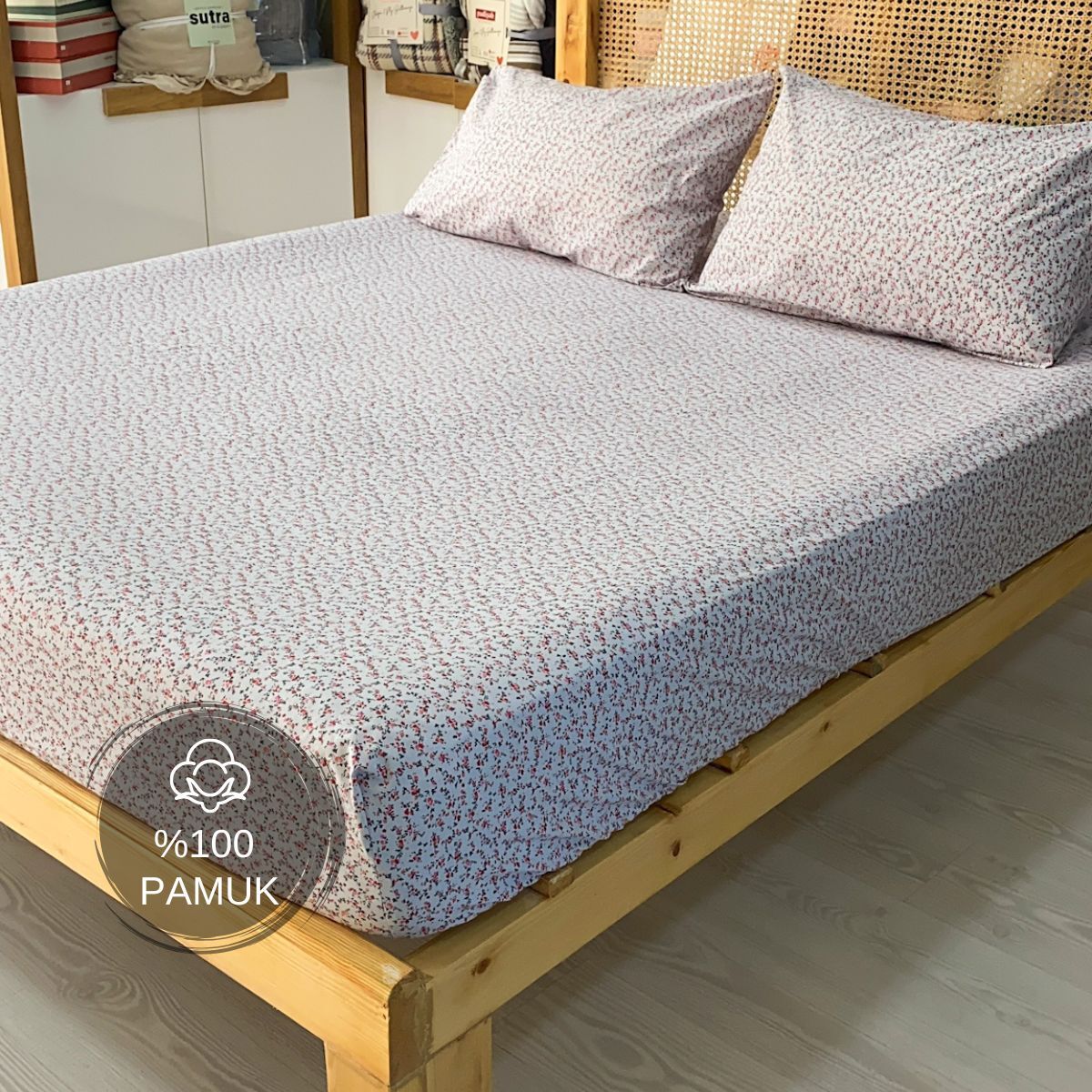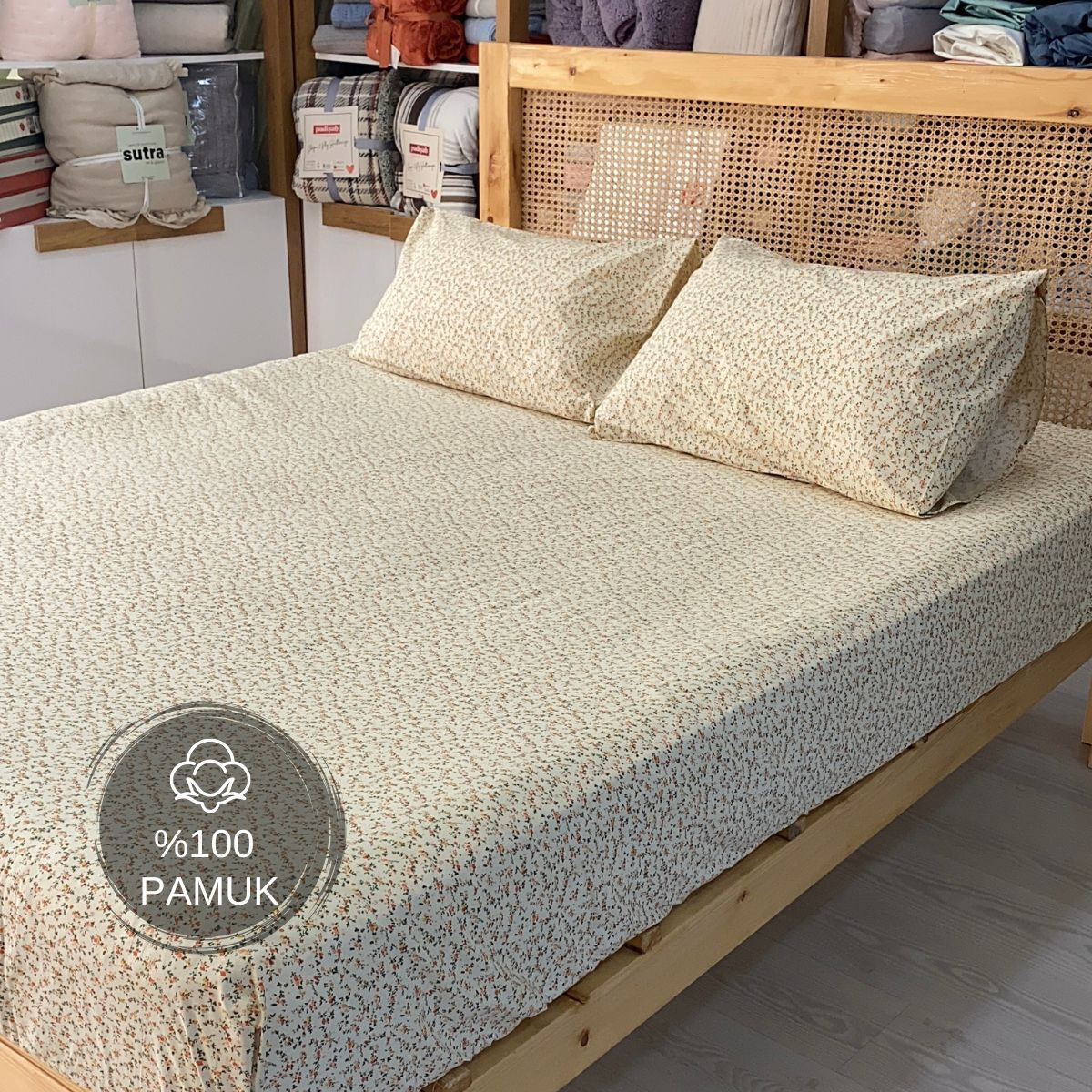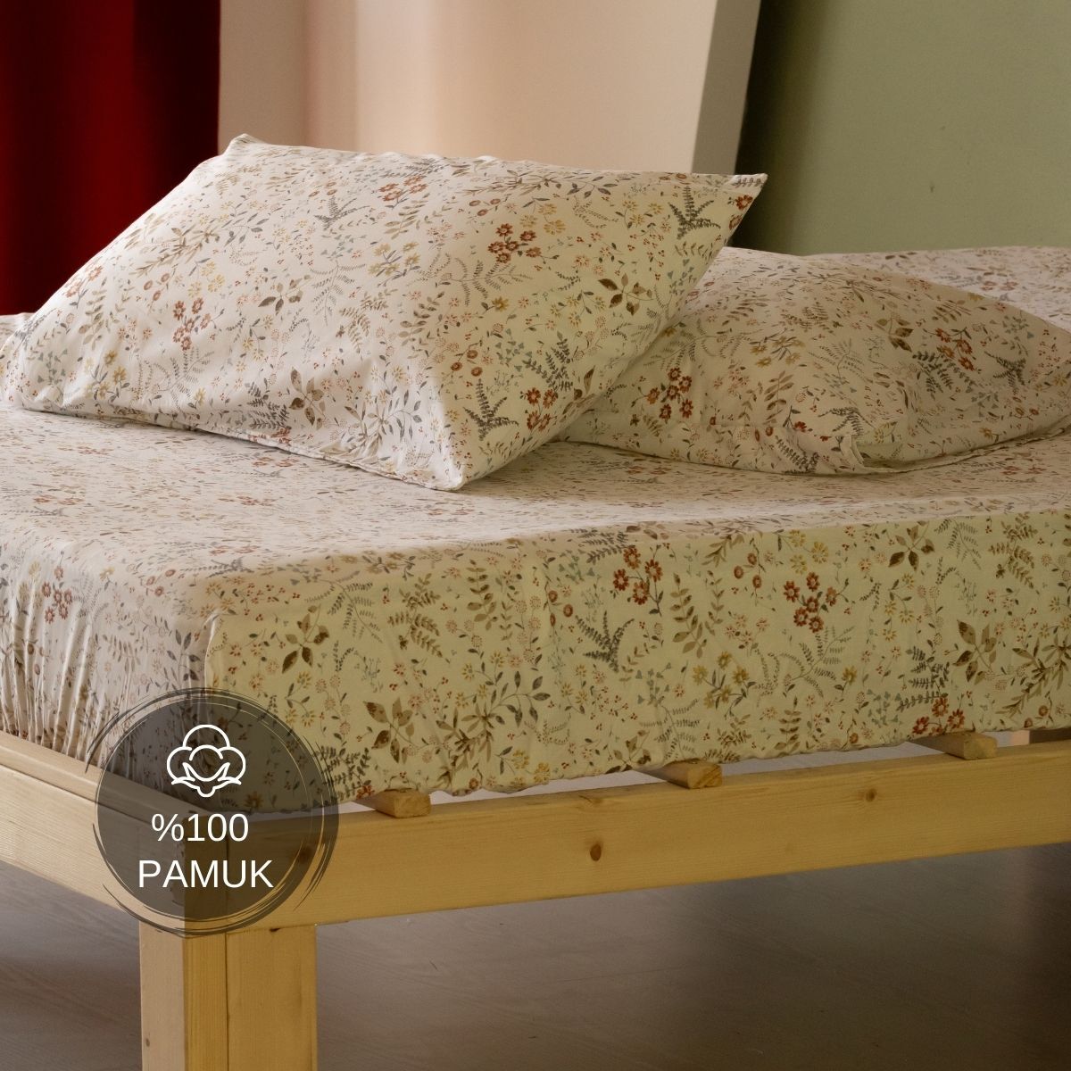 Çift Kişilik Sette; 1 adet çift kişilik lastikli çarşaf, 2 adet yastık kılıfı