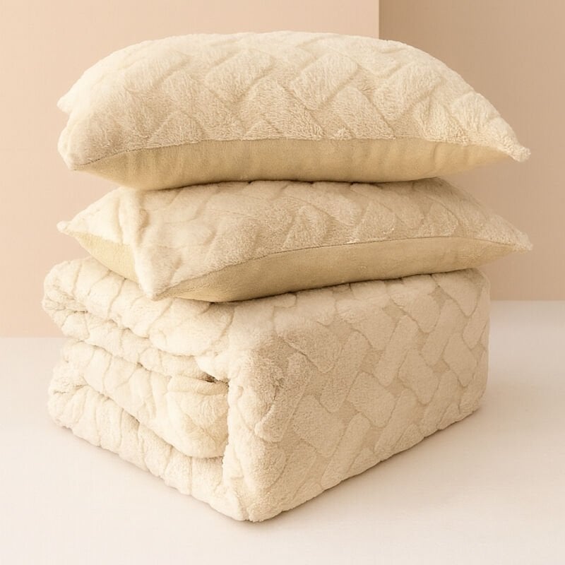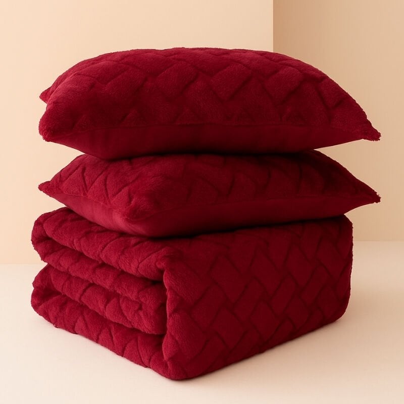 Yüksek kaliteli tavşan tüyü peluş dış yüzeyi ve kadife iç yüzeyi sayesinde cildinizle dost bir temas sunarken, elyaf dolgusu ile ideal ısı yalıtımı sağlar. Modern tasarımı ve renk seçenekleriyle her dekorasyona uyum sağlar.